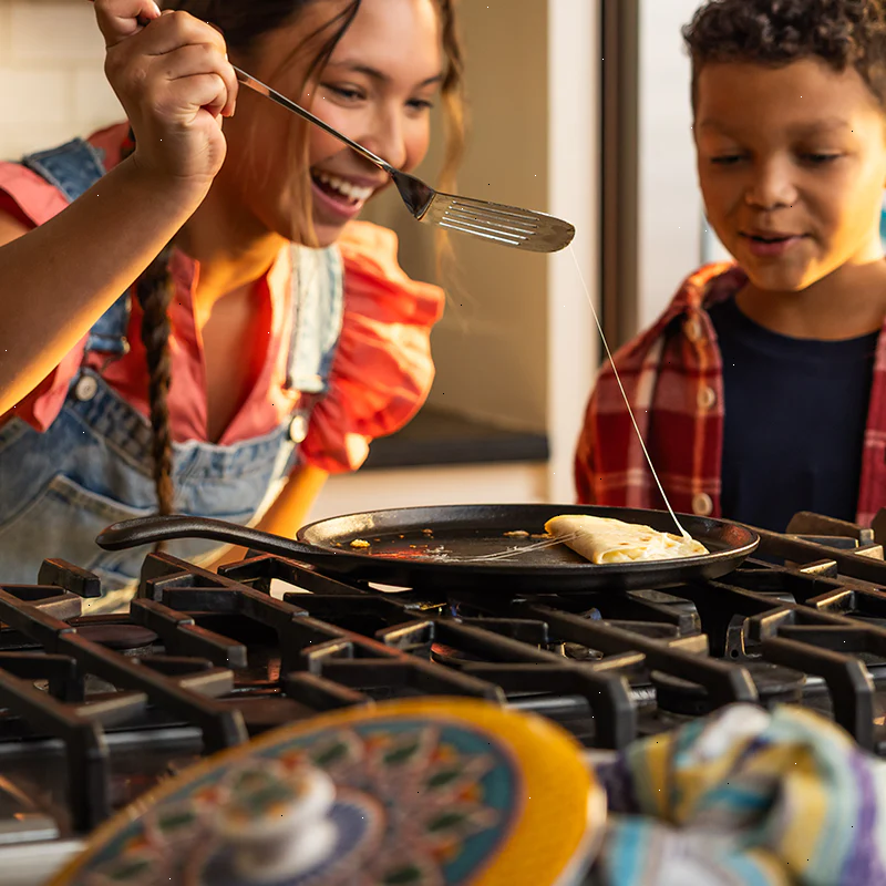 This griddle can do it all, from a big stack of pancakes to homemade tortillas for street tacos. Cast iron creates the magic with great heat retention, incredible durability, and a naturally seasoned cooking surface that’s ready to go, straight from the foundry. Just like all Lodge Cast Iron, this cookware is nontoxic, naturally seasoned, and made without PFAS.