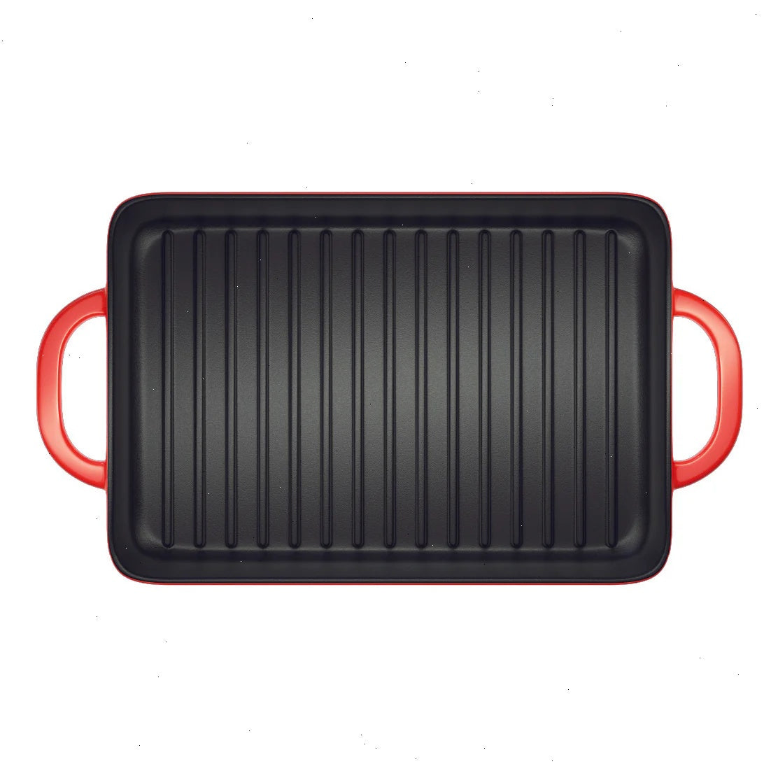 This colorful piece of enameled cast iron helps you bring grill lines to your favorite foods from the great indoors. It takes everything you love about cast iron, like great heat retention and durability, and combines it with an enameled surface that can withstand acidic ingredients. Sear on!