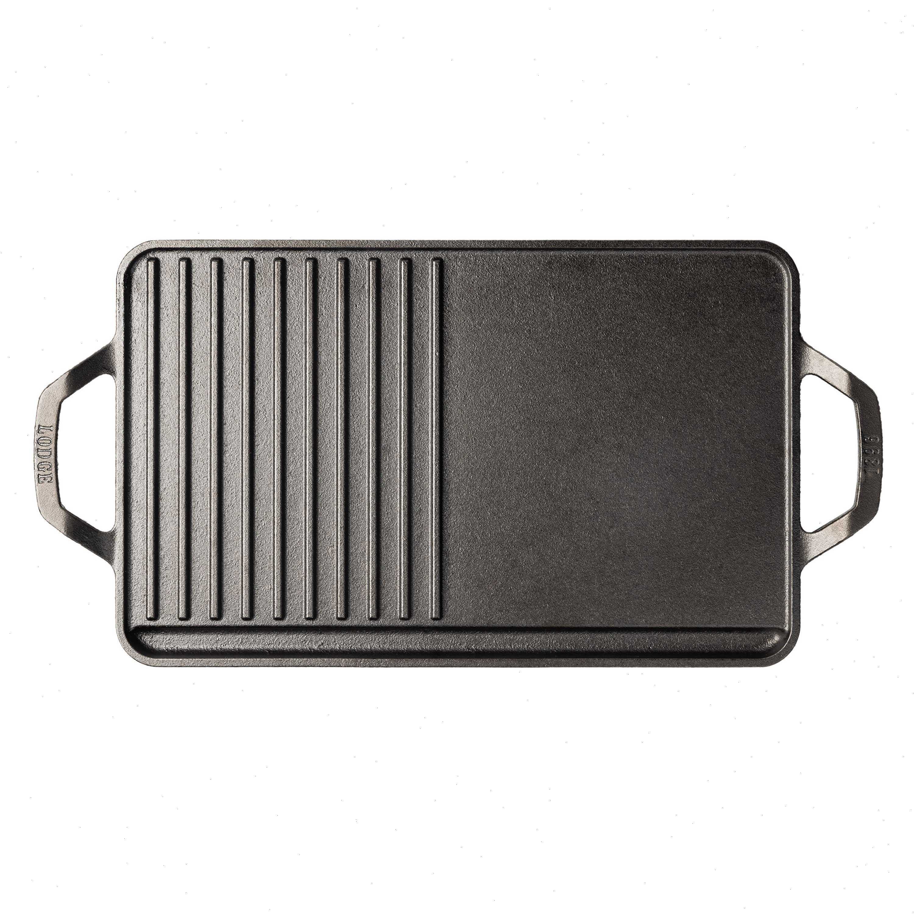 - Two-in-one grill/griddle cast iron cooking surface